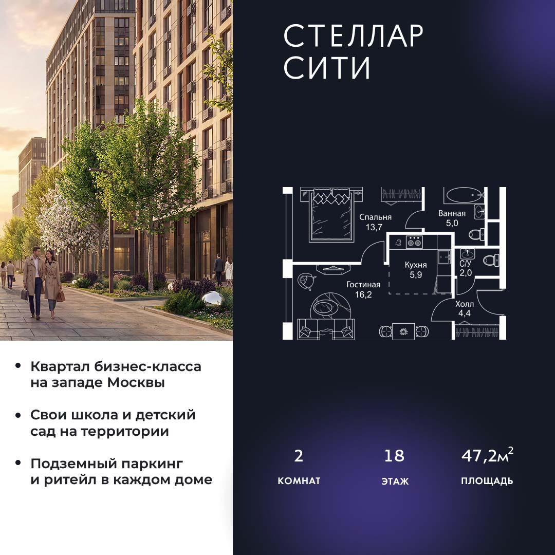 Купить 2к квартиру 47 м² в ЖК Stellar City (Стеллар Сити)