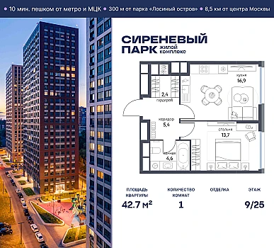 Квартира находится на 18 этаже, 4 корпуса жилого квартала Stellar City — микрогорода будущего на орбите Москвы.