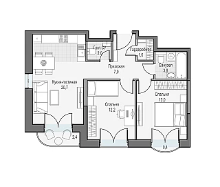 Площадь квартиры составляет: 61.3 кв. м, потолки: 3.1 м