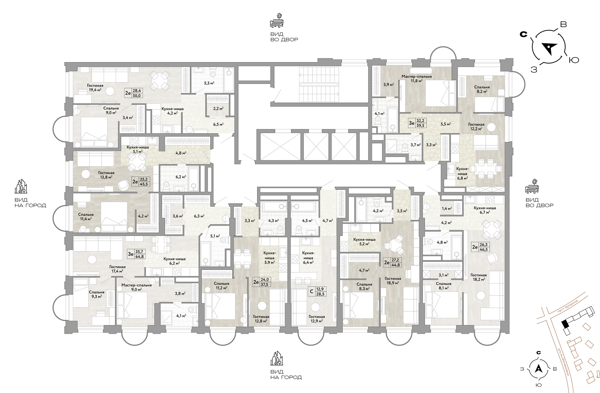 Квартира находится на 19 этаже, 4 корпуса жилого квартала Stellar City — микрогорода будущего на орбите Москвы.