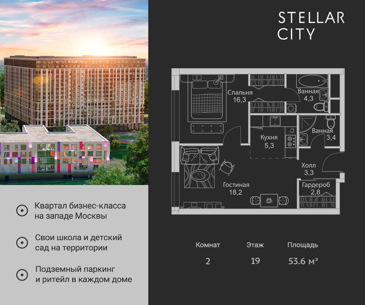 Купить 2к квартиру 53 м² в ЖК Stellar City (Стеллар Сити)