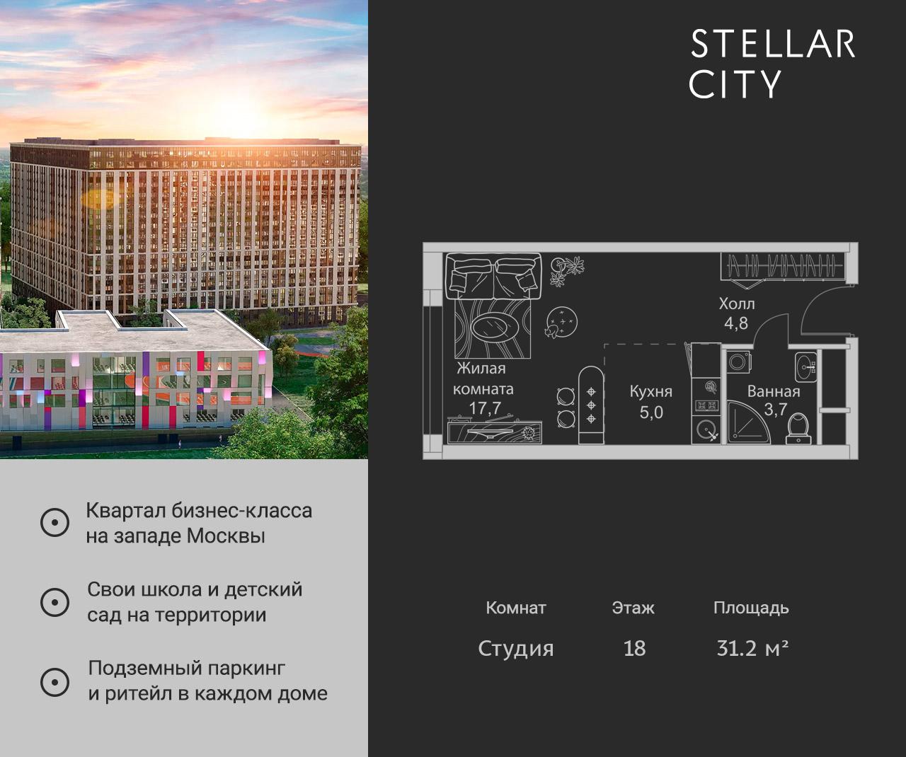 Купить 9к квартиру 31 м² в ЖК Stellar City (Стеллар Сити)