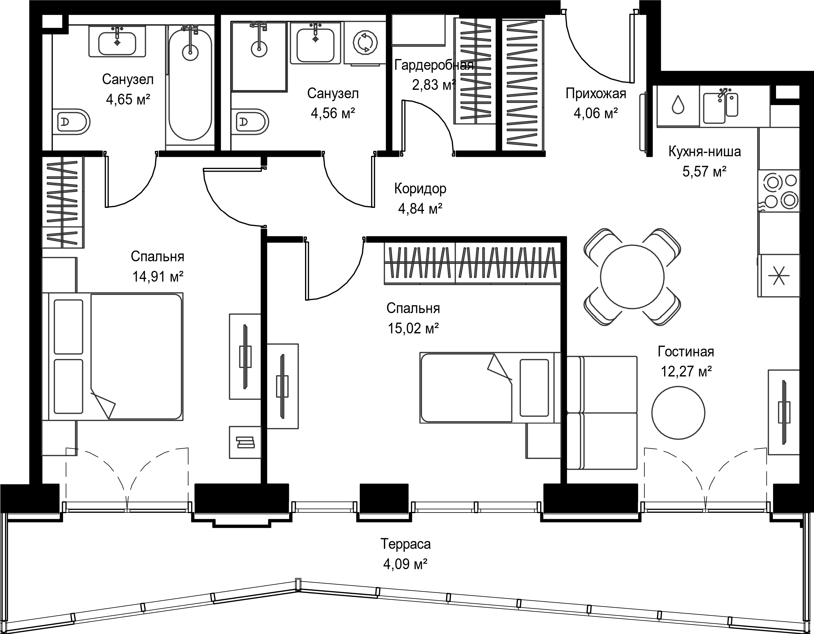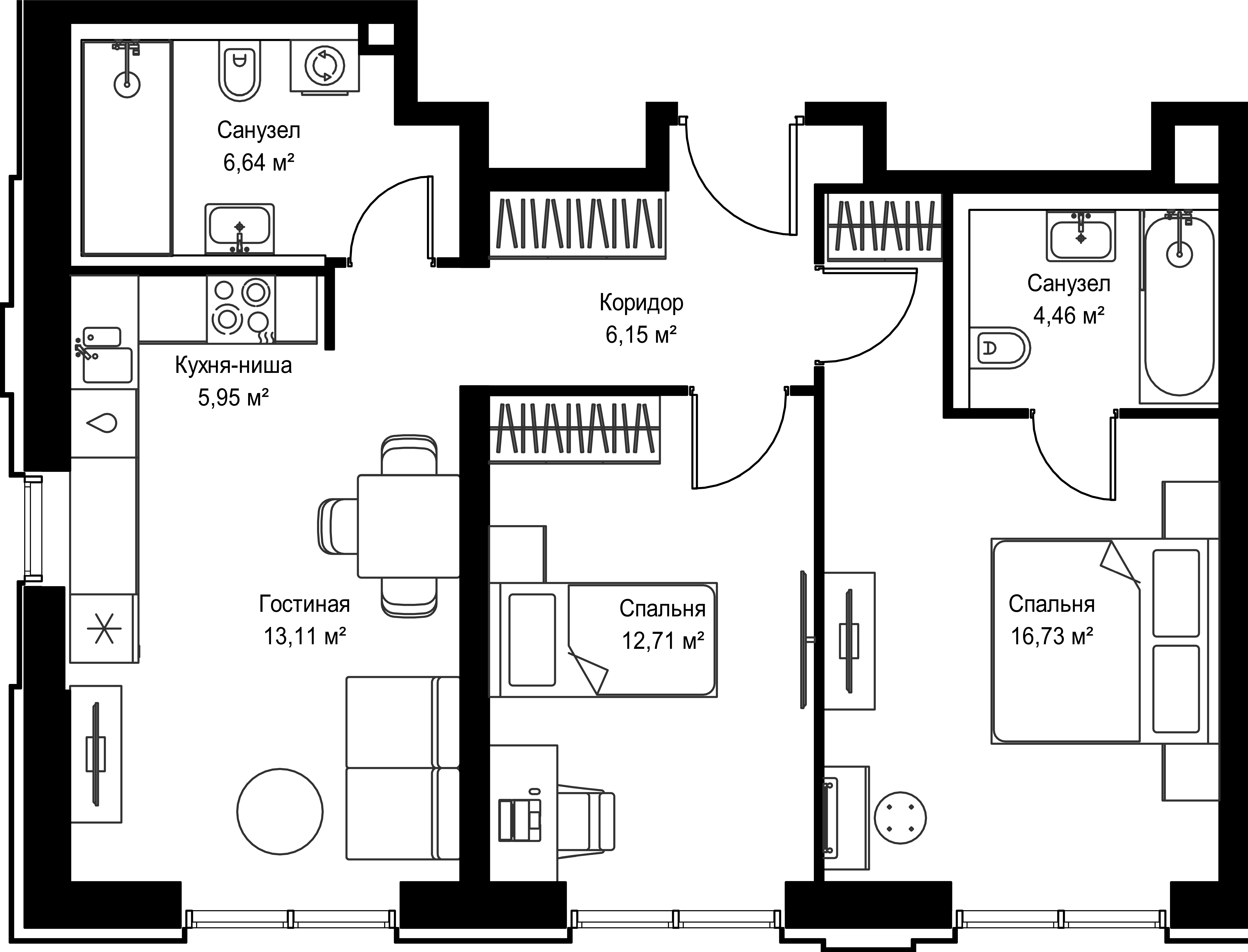 Площадь квартиры составляет: 80.8 кв. м, потолки: 3.1 м
