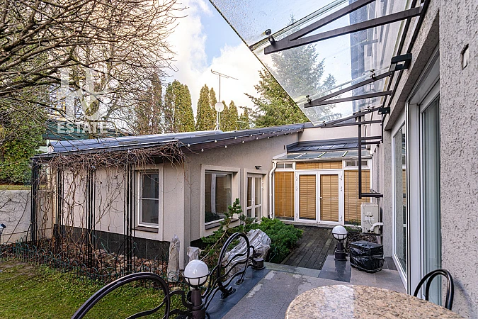 Погрузитесь в атмосферу уюта и безупречного качества в двухэтажном доме площадью 585 кв. м, который готов к немедленному заселению. В доме сделана потрясающая отделка. На крыше надежная фальцевая металлическая кровля. Использованы только лучшие материалы: окна от Schuco и черепица Braas на гостевом доме. Настоящее пространство для жизни - изысканный каминный зал для теплых вечеров. Тихая библиотека для уединения. Просторная и полностью оборудованная кухня с техникой.