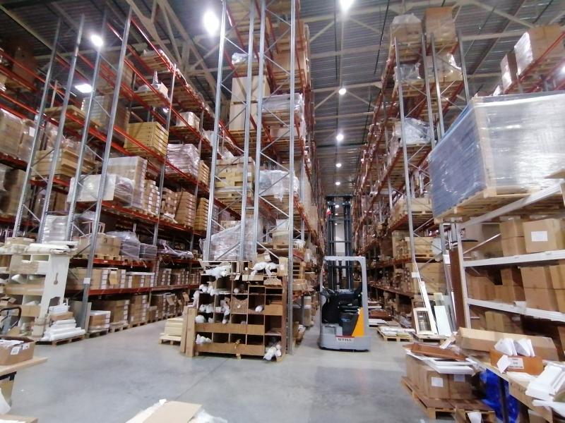 Высота потолка внутри склада 8 метров, стеллаж 7 метров, над галереей склада 5,5 метров, офисное помещение 3,5 метра.