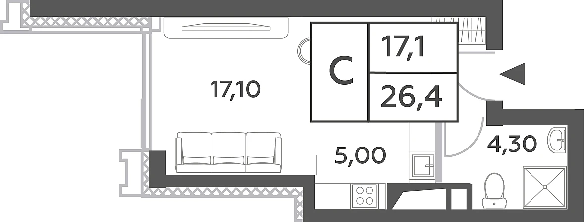 Купить квартиру студию 26 м²
