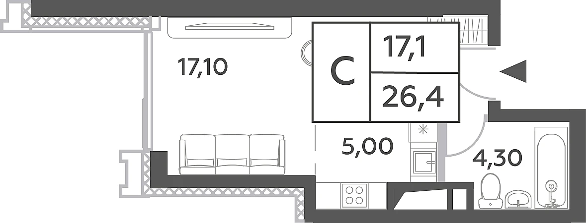 Купить квартиру студию 26 м²