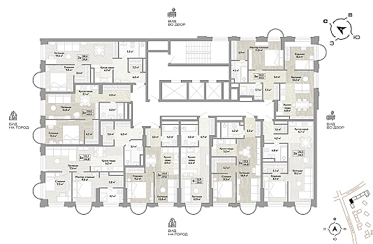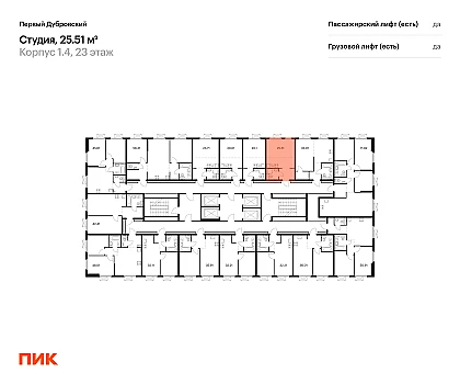 Квартира располагается на 15 этаже 28-этажного дома в ЖК MYPRIORITY Dubrovka.