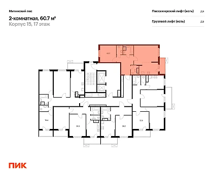 Две изолированные комнаты, общая площадь 65,0 м2.
