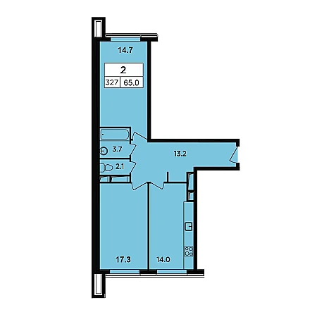 Удобная планировка: кухня 14 м2; комнаты 17 м2 и 14 м2; холл 13,2 м2 — место под большой шкаф/гардероб; два санузла: 3,7 м2 (ванная) и 2 м2 (гостевой).