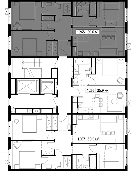 Жилая площадь 40.16 м2, кухня 11.6 м2. Площадь комнат: 18.64/10.86/10.66 м2, черновая отделка, лоджий - 1, окна выходят во двор.