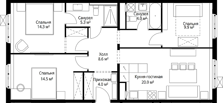 Продается 3-комн. квартира, площадью 69.55 м2 в монолитной новостройке в 20 мин. транспортом от м. Щелковская. Возможен вариант покупки с использованием ипотечных средств.