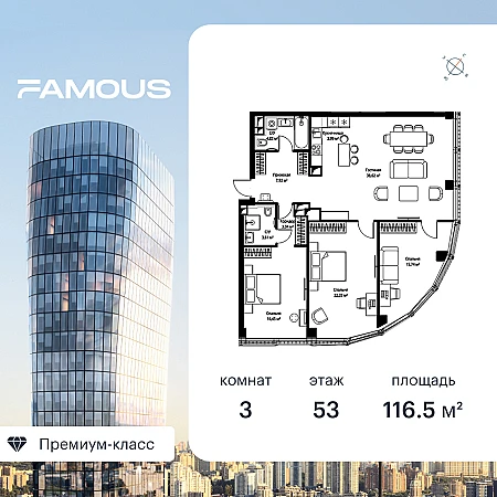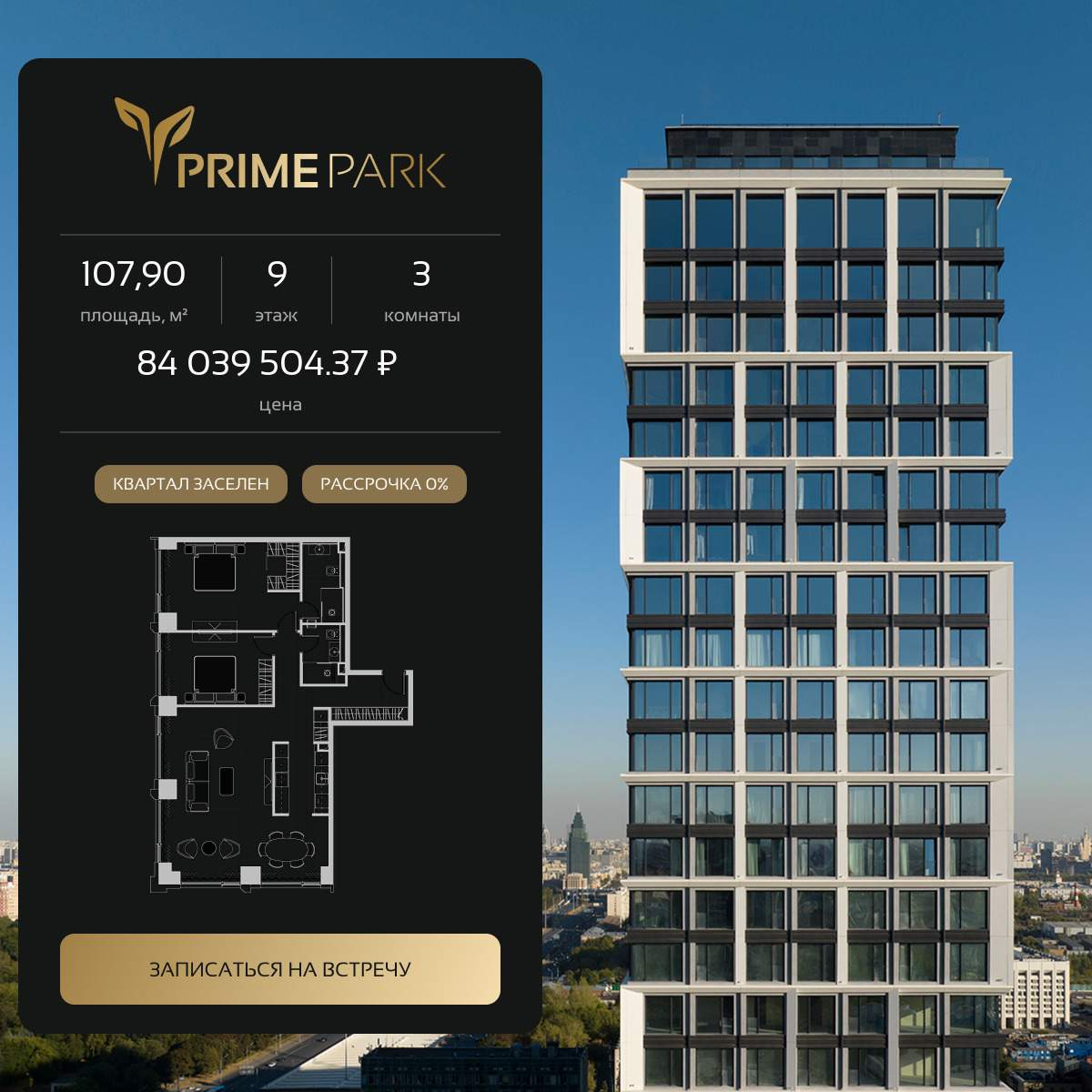 Купить 3к квартиру 107 м² в ЖК Prime Park