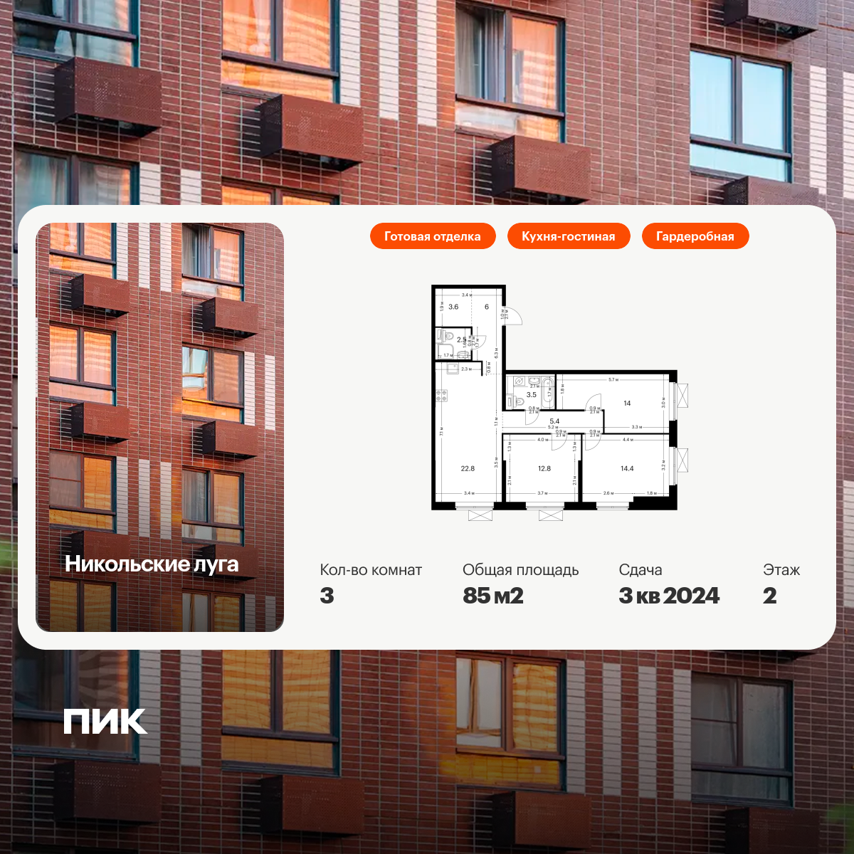 Купить 2к квартиру 83 м² в ЖК Изумрудные холмы