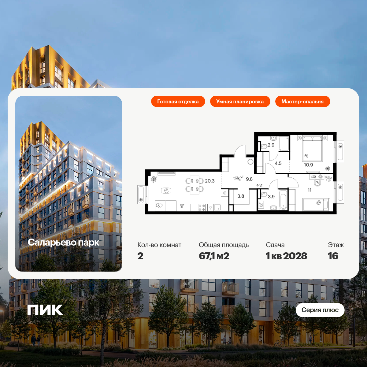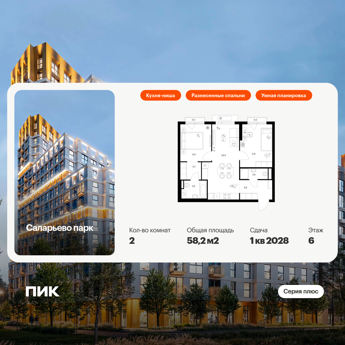 Инфраструктура рядомВокруг дома сложилась богатая инфраструктура обжитого района: поликлиники, несколько школ (в одной из которых в 2026 году завершается капительный ремонт), детские сады, магазины, банки, аптеки, кафе и рестораны. Множество ВУЗов исторически расположены поблизости Тропарёво-Никулино.Также в пешей доступности крупные ТЦ и развлекательные центры.Для прогулок в пяти минутах ходьбы расположен Тропарёвский лесопарк с оборудованными местами для пикников, прогулочными дорожками, детскими, спортивными зонами и Конным клубом.