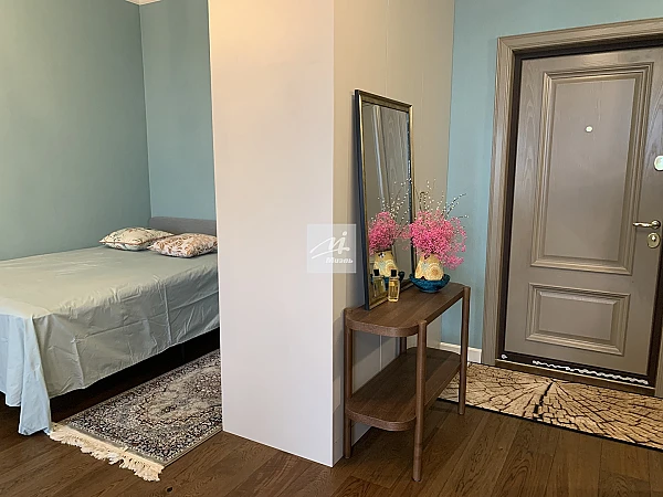 Полы паркетная доска, стены покраска. Много света, застекленная лоджия.Установлен кондиционер, телевизор, проведен интернет.