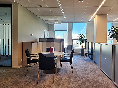 → Площадь этажа ~2,400 кв.м., на нем можно комфортно разместить около 274 рабочих мест см. прилагаемый тестовую рассадку этажа;