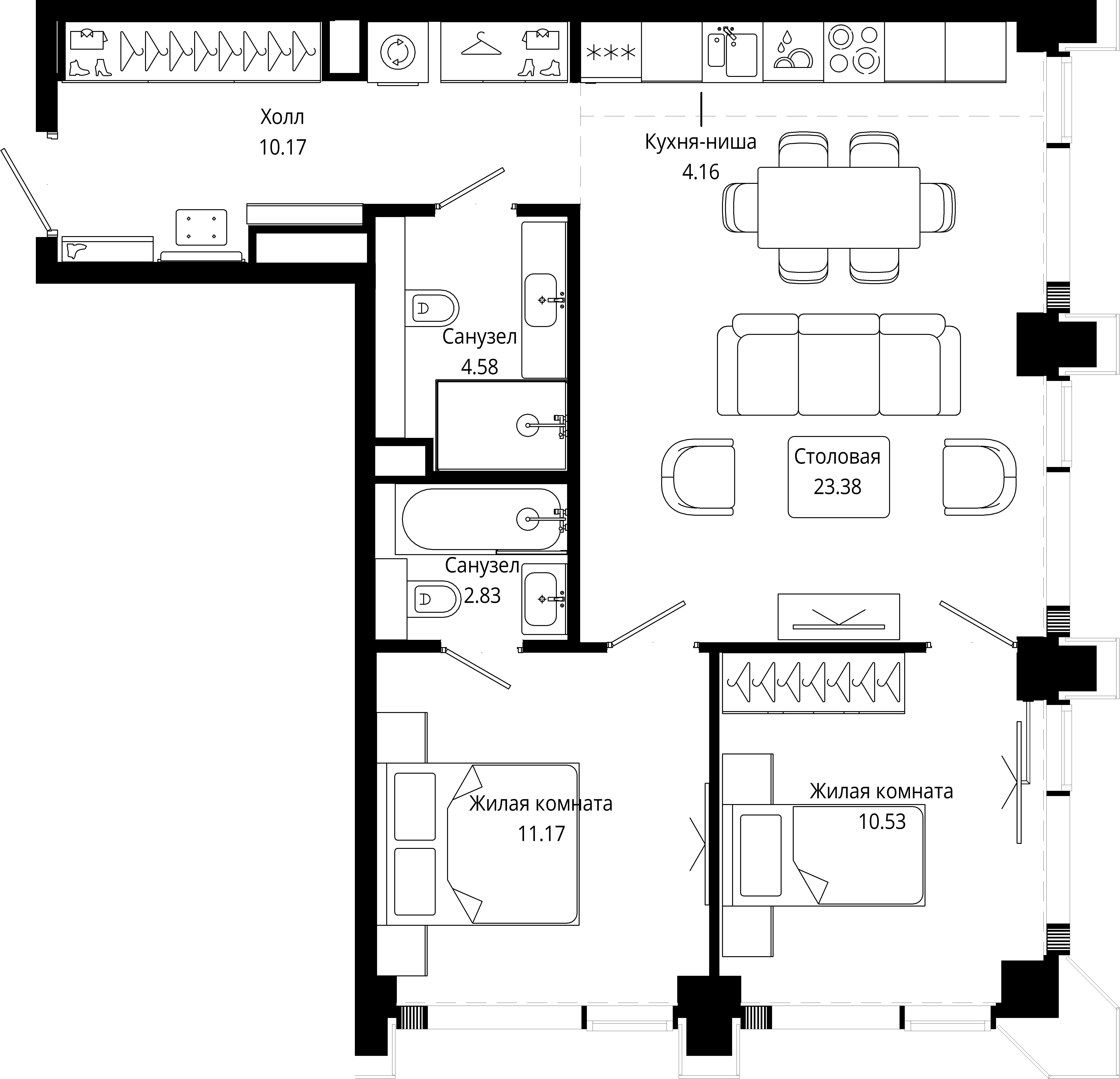 Купить 3к квартиру 59 м² в квартале Мневники от Гранель