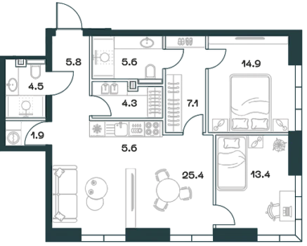 Купить 2к квартиру 74 м² в МФК ДОМ ДАУ