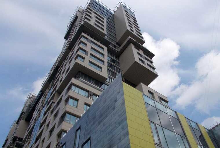 24-этажный монолитный жилой дом, выполненный по необычному архитектурному проекту, аналогов которого нет в мире. Он состоит из двух башен, соединяющихся между собой галереями на 9, 17 и 22 этажах. Кровля эксплуатируется, на ней высажены декоративные растения. Имеется подземная парковка для автомобилей.