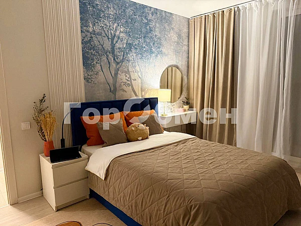 В квартире имеется вся необходимая для проживания мебель и техника: шкафы и полки для вещей, зеркала, комфортная кровать, кондиционер, телевизоры на кухне и в комнате, стиральная и посудомоечная машинки, холодильник, варочная панель, духовка, свч, большой кухонный стол и другие удобства.