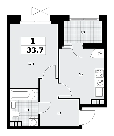 Продаётся 1-комнатная квартира, площадью 33,7 кв. м на 6-м этаже дома бизнес-класса в ЖК "Бунинские кварталы". Квартира с функциональной планировкой: большие окна, высота потолка 3,1 м, балкон.