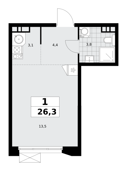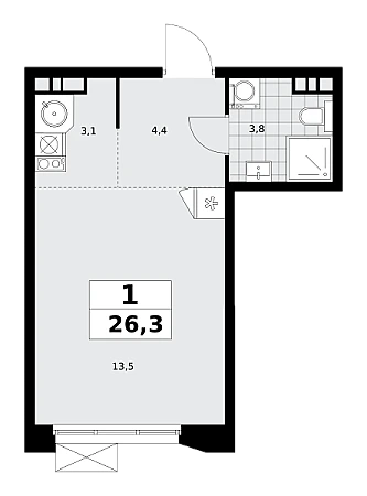 Продаётся квартира-студия, площадью 26,3 кв. м на 7-м этаже дома бизнес-класса в ЖК "Бунинские кварталы". Квартира с функциональной планировкой: большие окна, высота потолка 3,1 м, балкон.