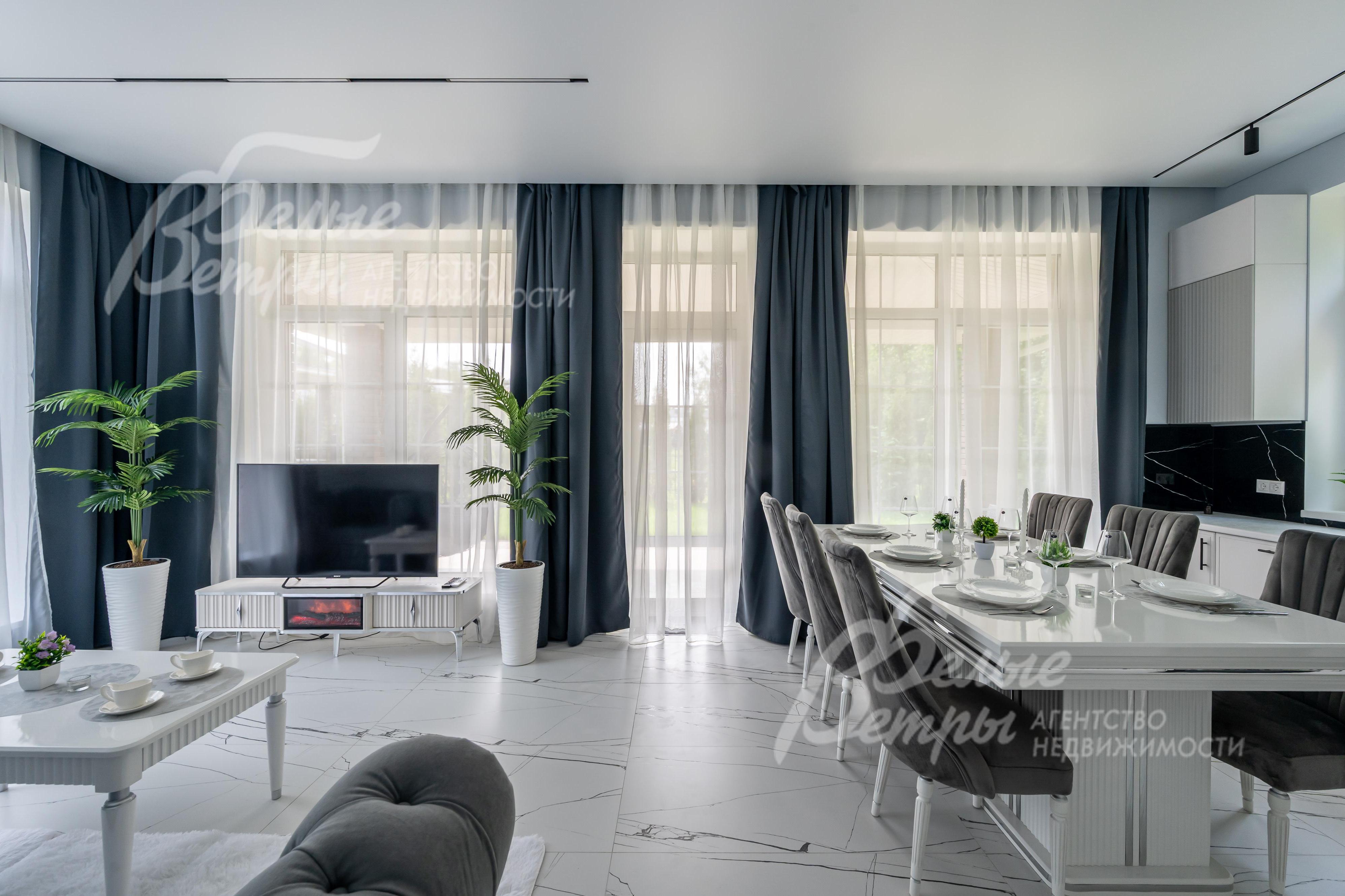Современный дом в стиле Хай-тек. Удобная современная планировка, высокие потолки 3 м. На первом этаже расположена спальня для гостей. Мастер-блок со своим с/у и гардеробной. Просторная гостиная с камином, кухня оборудована всей необходимой техникой.