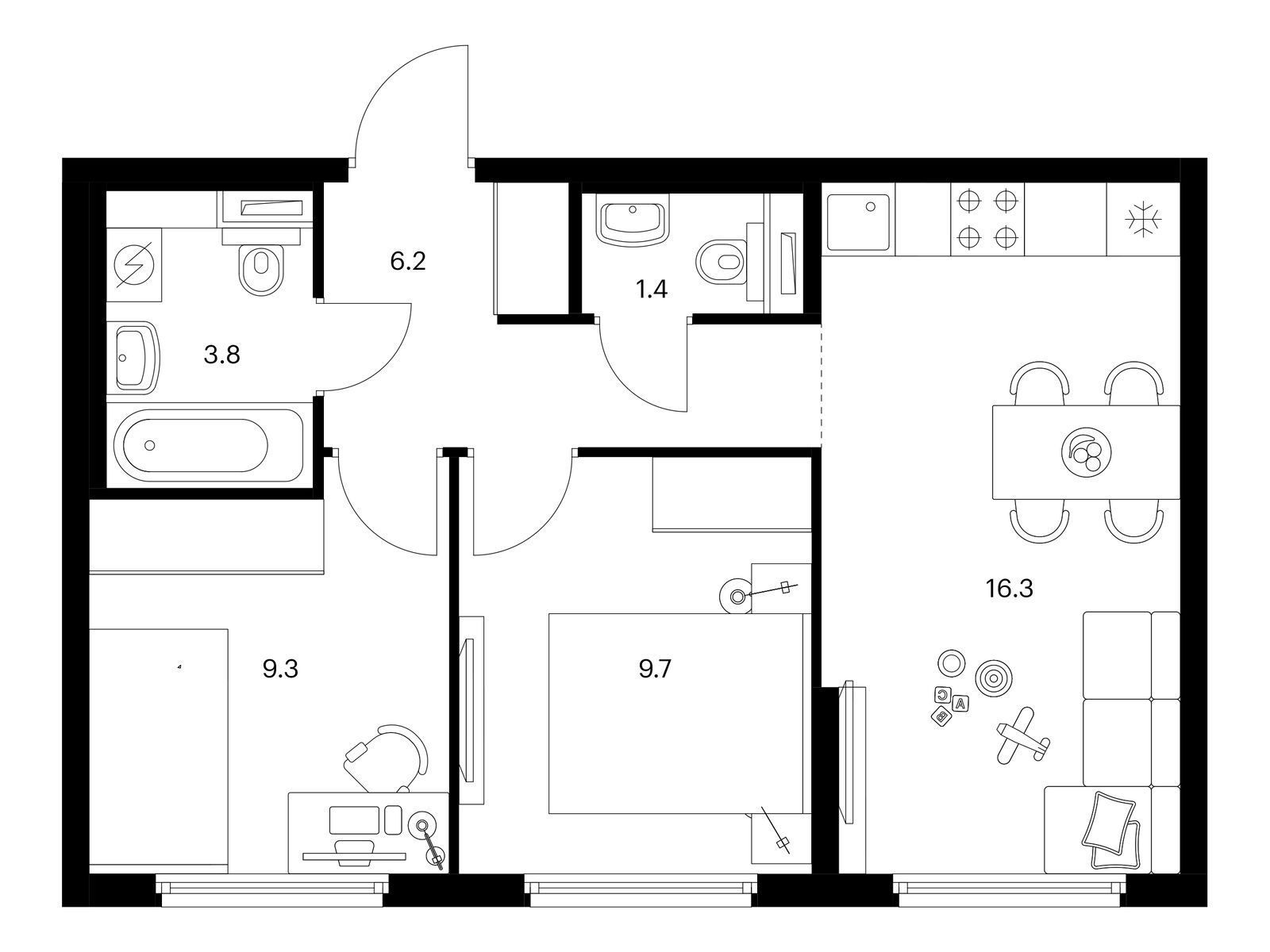 На верхних этажах корпуса 1.4 будут квартиры с большими террасами площадью от 29 до 55 м². Артикул - 953786