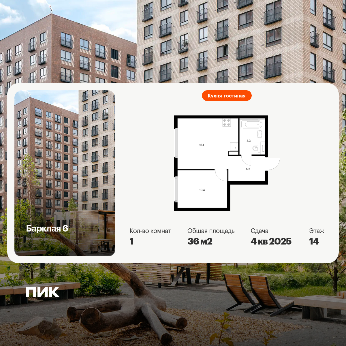 Продаётся 1-комн.квартира площадью 36.00 кв.м на 14 этаже 32 этажного дома (Корпус 6, секция 1) проекта ПИК Барклая 6. Светлый просторный подъезд на уровне земли, функциональная планировка, большие окна, с отделкой.