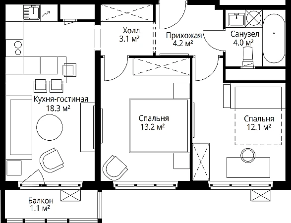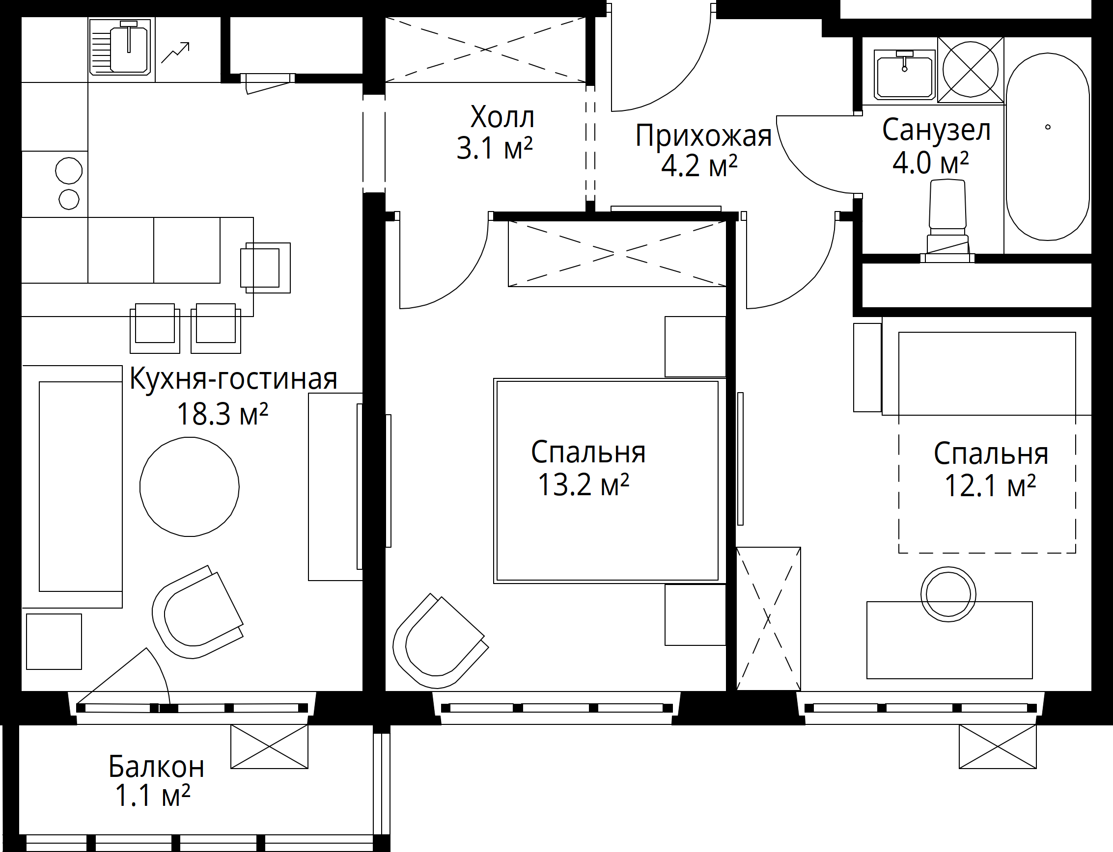 Главная Купить квартиру в Москве и МО 2к квартира 56 м² в мкр Купелинка (д Сапроново)