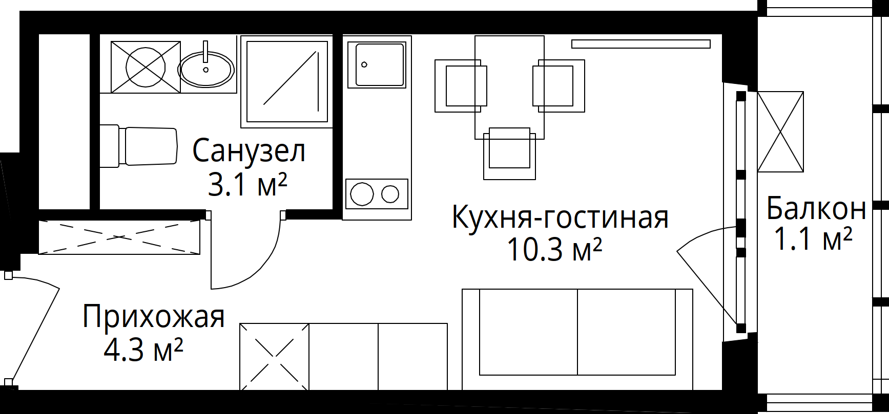 Главная Купить квартиру в Москве и МО 9к квартира 18 м² в мкр Купелинка (д Сапроново)