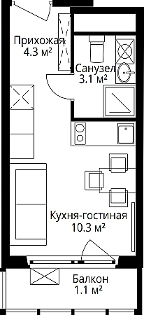 Главная Купить квартиру в Москве и МО 9к квартира 18 м² в мкр Купелинка (д Сапроново)