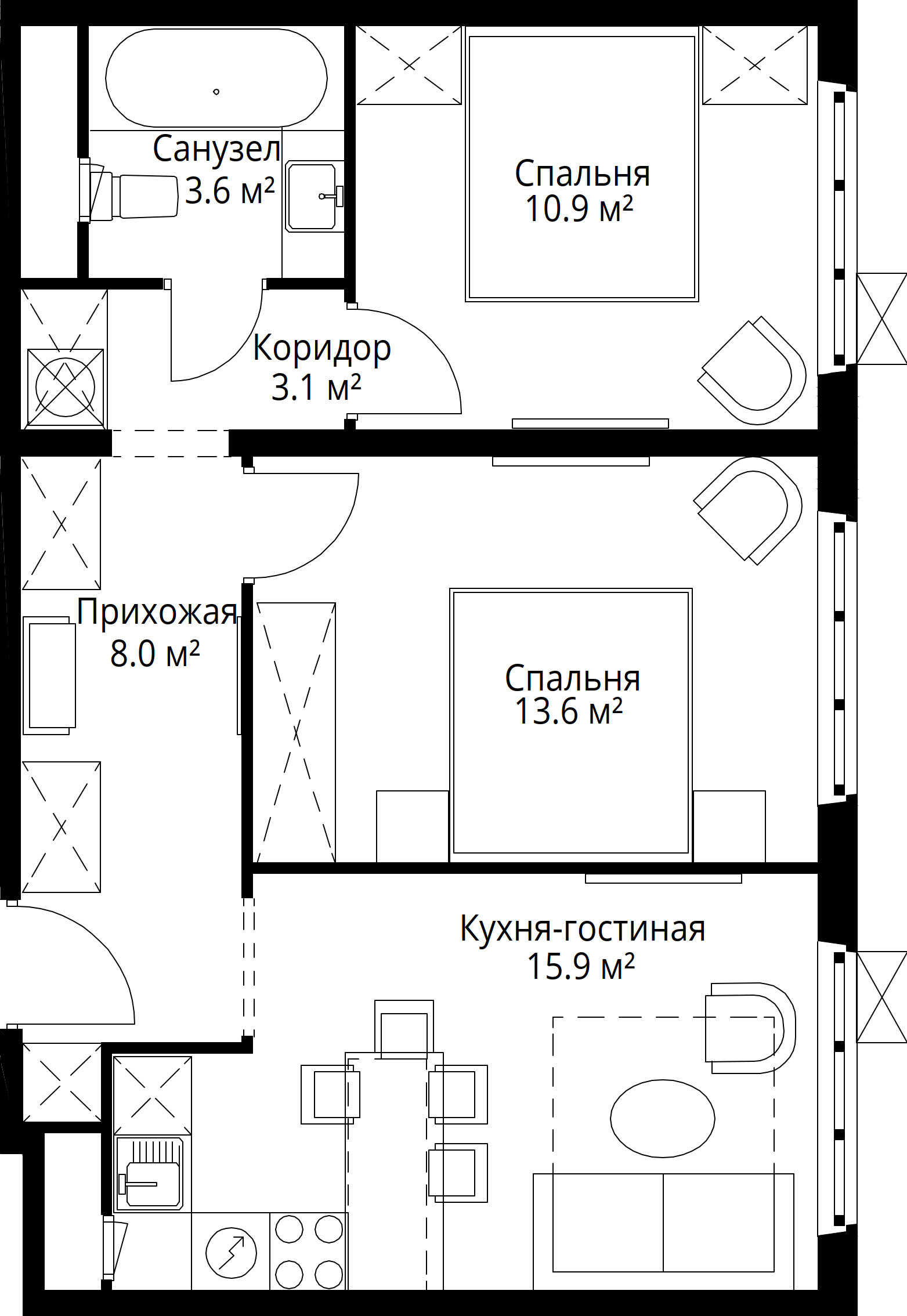 Главная Купить квартиру в Москве и МО 2к квартира 55 м² в мкр Купелинка (д Сапроново)