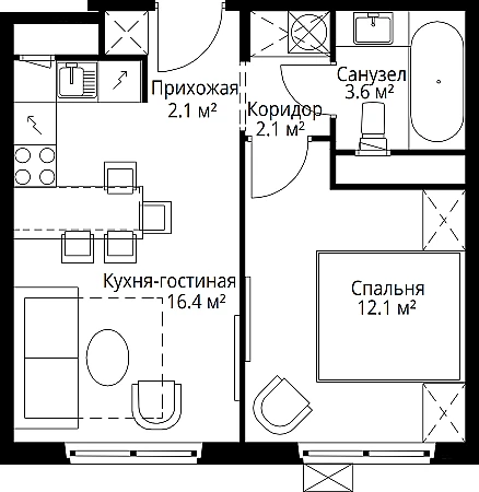 Главная Купить квартиру в Москве и МО 1к квартира 36 м² в мкр Купелинка (д Сапроново)