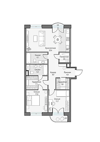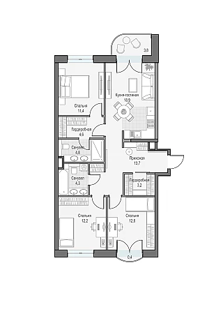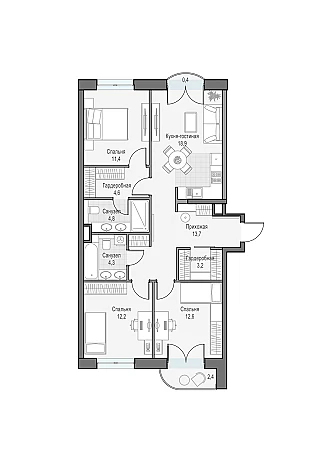 Купить 3к квартиру 104 м² в ЖК Level Южнопортовая