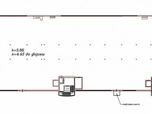 . Свободная площадь open space с высокими потолками и базовой отделкой, без внутренних