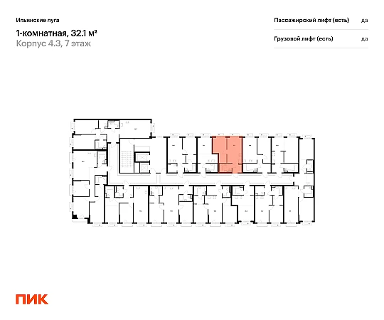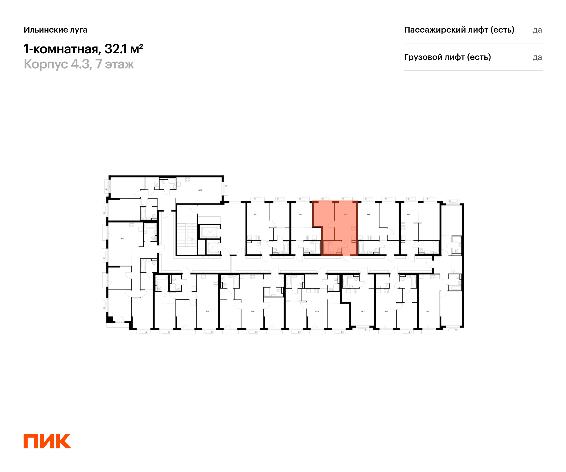Продаётся 1-комн.квартира площадью 32.10 кв.м на 7 этаже 9 этажного дома (Корпус 4.3, секция 5) проекта ПИК Ильинские луга. Светлый просторный подъезд на уровне земли, функциональная планировка, большие окна, с отделкой.