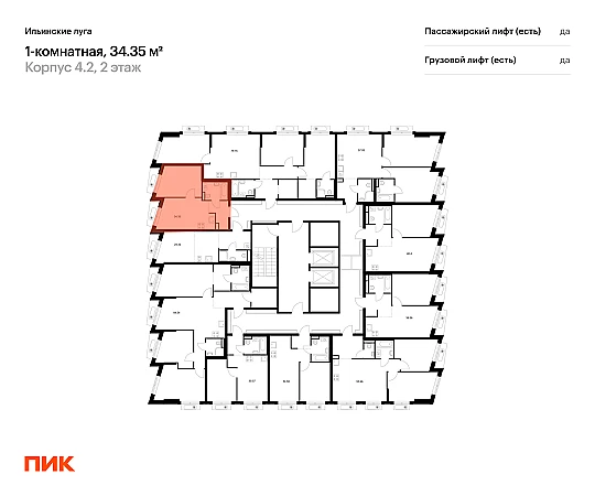 Продаётся 1-комн.квартира площадью 34.35 кв.м на 2 этаже 9 этажного дома (Корпус 4.2, секция 5) проекта ПИК Ильинские луга. Светлый просторный подъезд на уровне земли, функциональная планировка, большие окна, с отделкой.