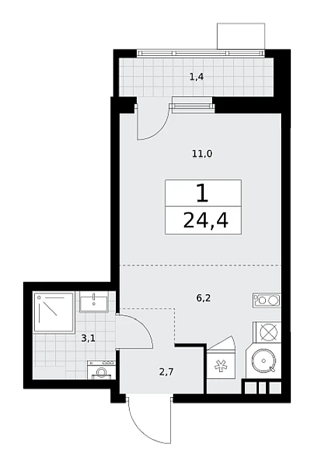 Купить 1к квартиру 33 м² в ЖК Восточное Бутово