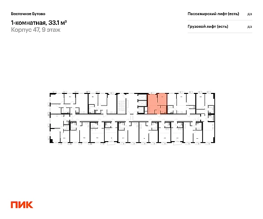 Продаётся 1-комн.квартира площадью 33.10 кв.м на 9 этаже 25 этажного дома (Корпус 47, секция 3) проекта ПИК Восточное Бутово. Светлый просторный подъезд на уровне земли, функциональная планировка, большие окна, с отделкой.