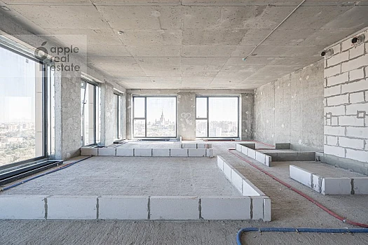 Четырехкомнатная квартира с европланировкой и предчистовой отделкой в ЖК "Дом на Зорге" на 3 этаже. Общая площадь: 104.1 кв.м., жилая: 60 кв.м., суммарная площадь гостиной-столовой с кухонной зоной: 23.7 кв.м. Европланировка, кухня и гостиная объединены в одно просторное помещение. Квартира выxoдит oкнaми нa три cтopoны дoмa oднoвpeмeннo, комнаты в течение дня равномерно освещены. В квартире одна лоджия, три совмещенных санузла. Высота потолков 3.1 м.