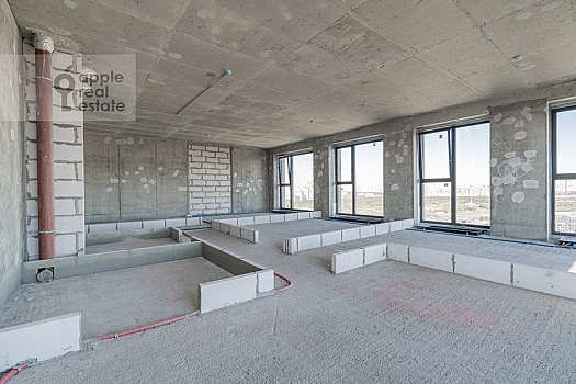 4-комн. квартира с европланировкой и предчистовой отделкой в ЖК "Дом на Зорге" на 3 этаже. Общая площадь: 104.1 кв.м., жилая: 60 кв.м., общая площадь гостиной-столовой с кухонной зоной: 23.7 кв.м. Европейская планировка, кухня и гостиная объединены в одно просторное помещение. Квартира без проходных комнат, окна выходят нa три cтopoны дома. В квартире одна лоджия, три совмещенных санузла. Высота потолков 3.1 м.