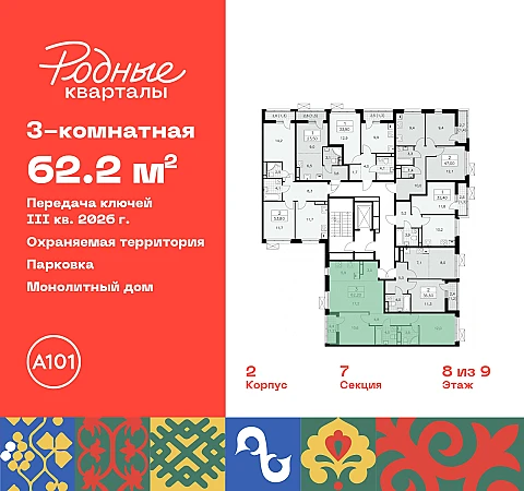 Купить 3к квартиру 62 м² в ЖК Родные кварталы