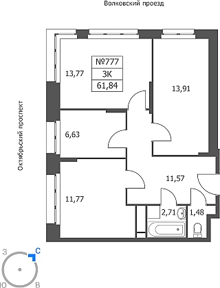 Купить 3к квартиру 59 м² в ЖК Родные кварталы