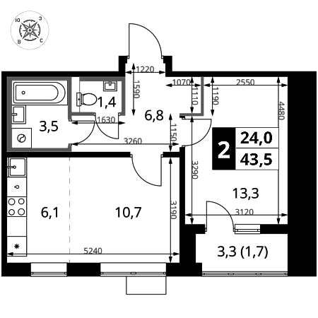 Кухня оборудована новым кухонным гарнитуром со встроенной стиральной и посудомоечной машиной премиальных марок, варочной панелью и стильным холодильником, на полу плитка. Комната оборудована двухспальной кроватью с ортопедическим матрасом, встроенным шкафом-купе, кондиционером и другими предметами мебели. В ванной комнате установлена душевая кабина, унитаз-инсталляция, подвесная раковина, полотенцесушитель. Есть балкон.