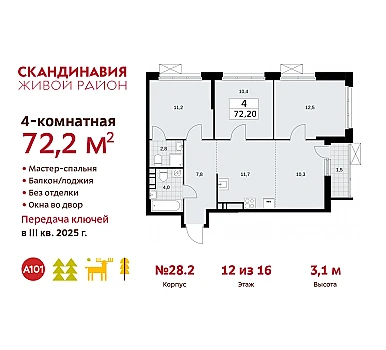 Купить 3к квартиру 88 м² в квартале квартал на воде