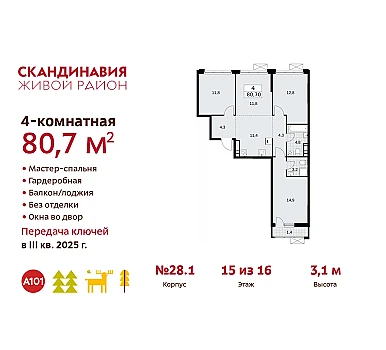 Квартира без отделки. Доступность опции «отделка» и возможность комплектации мебелью и декором уточняйте у застройщика.