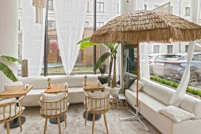 Большой зал. Кухня. Барная стойка. Сан/узлы. Согласованная летняя веранда - 114 м2.Место для вывески на фасаде здания.