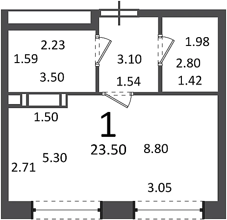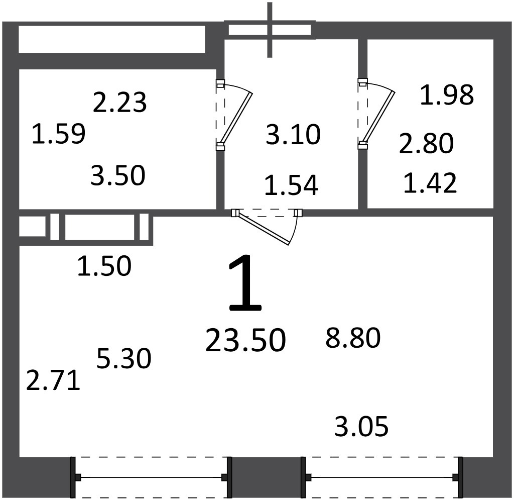 Квартира, 1-комн., 23,5 м², НАО | НАО, муниципальный округ Коммунарка, пр-т Куприна, д. 30, корп. 9, этаж 13, кв. 189